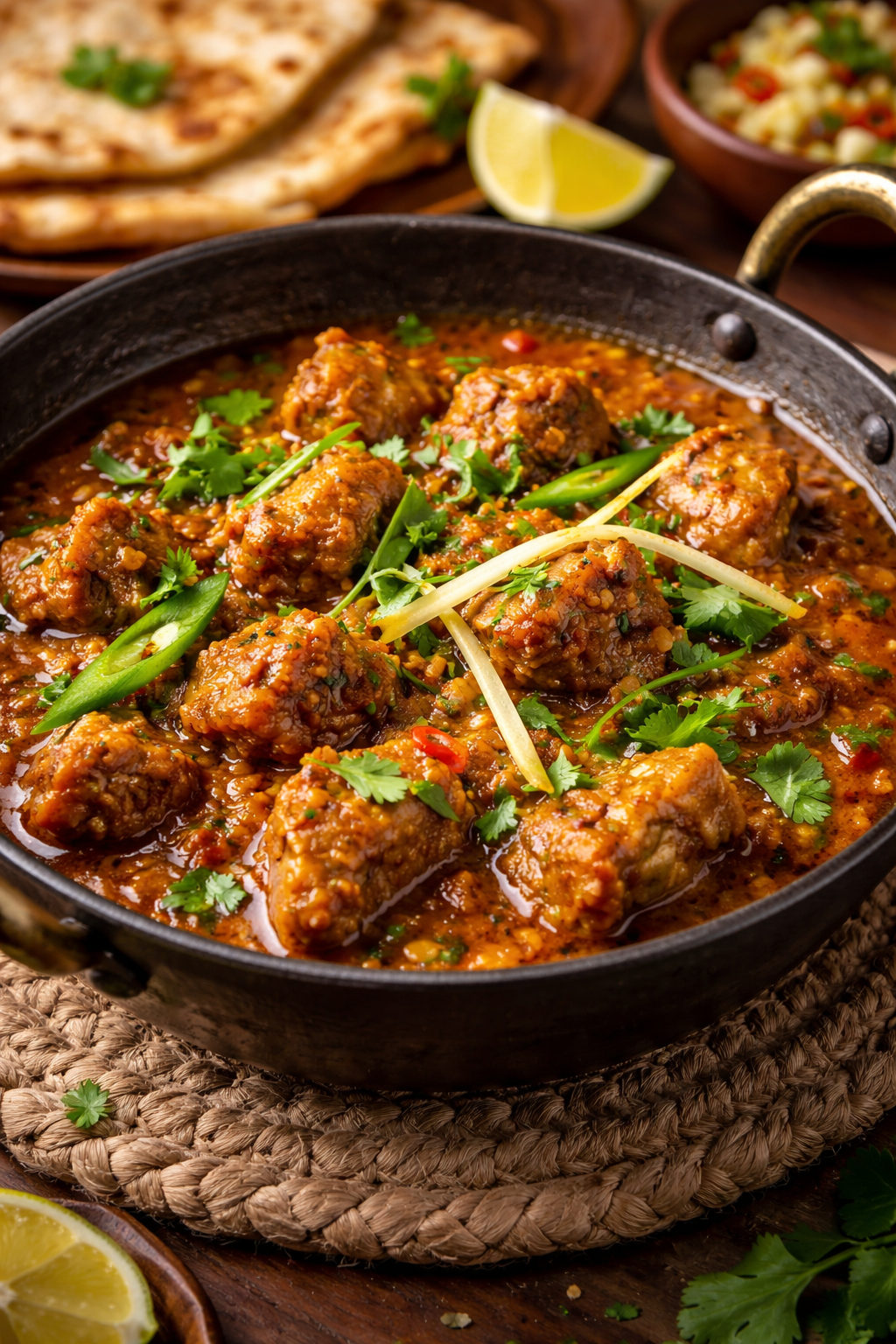 कढ़ाई में पकता हुआ मसालेदार मटन… उसकी खुशबू जैसे ही उठती है, पूरा घर “आज कुछ खास बना है!” का एलान करने लगता है! चलिए बनाते हैं स्वाद से भरपूर कढ़ाई मटन मसाला!